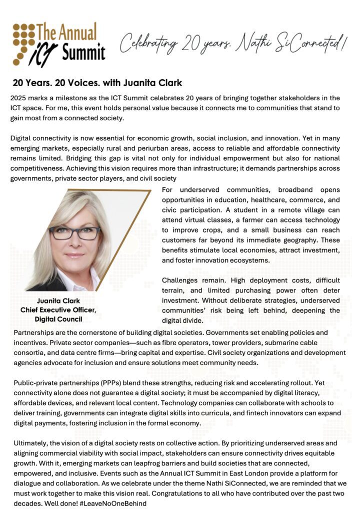 To empower Southern Africa’s digital future by fostering collaboration, innovation, and inclusive ICT leadership — uniting government, private sector, and academia in driving resilient, equitable digital transformation in South Africa and beyond.