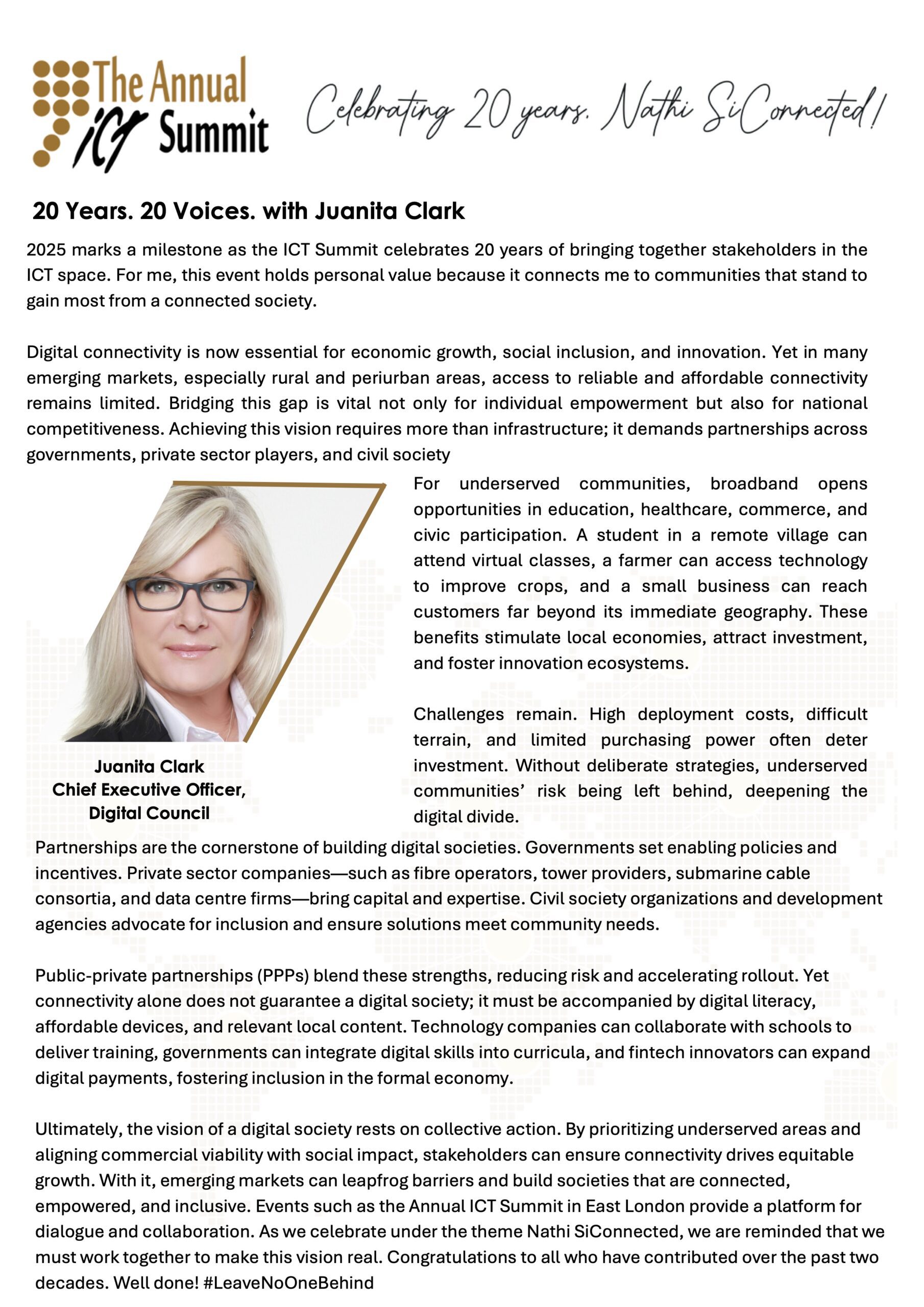 1. Convening thought leaders, innovators, and policymakers annually to exchange insights, showcase cutting-edge ICT solutions, and catalyse partnerships for digital development.